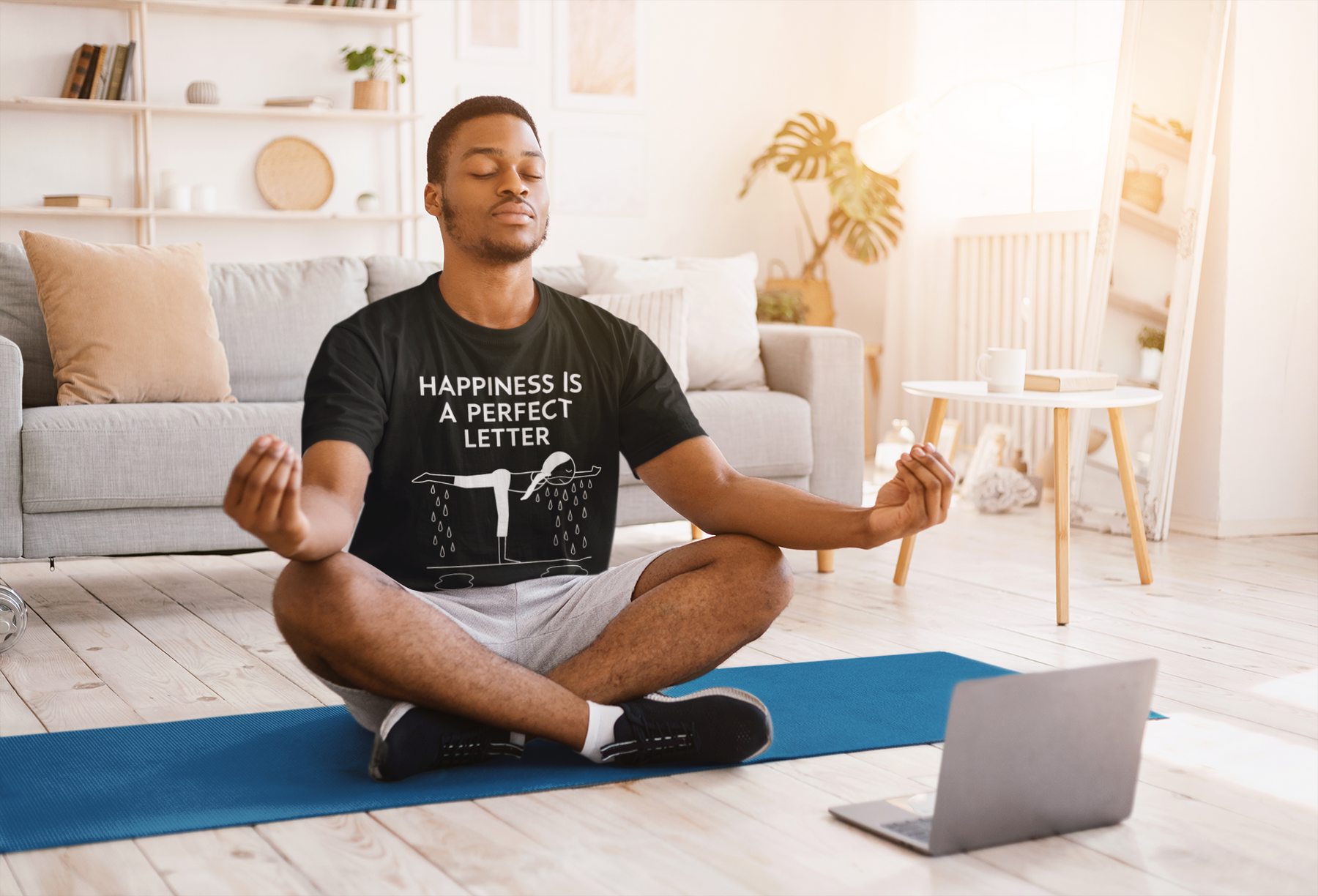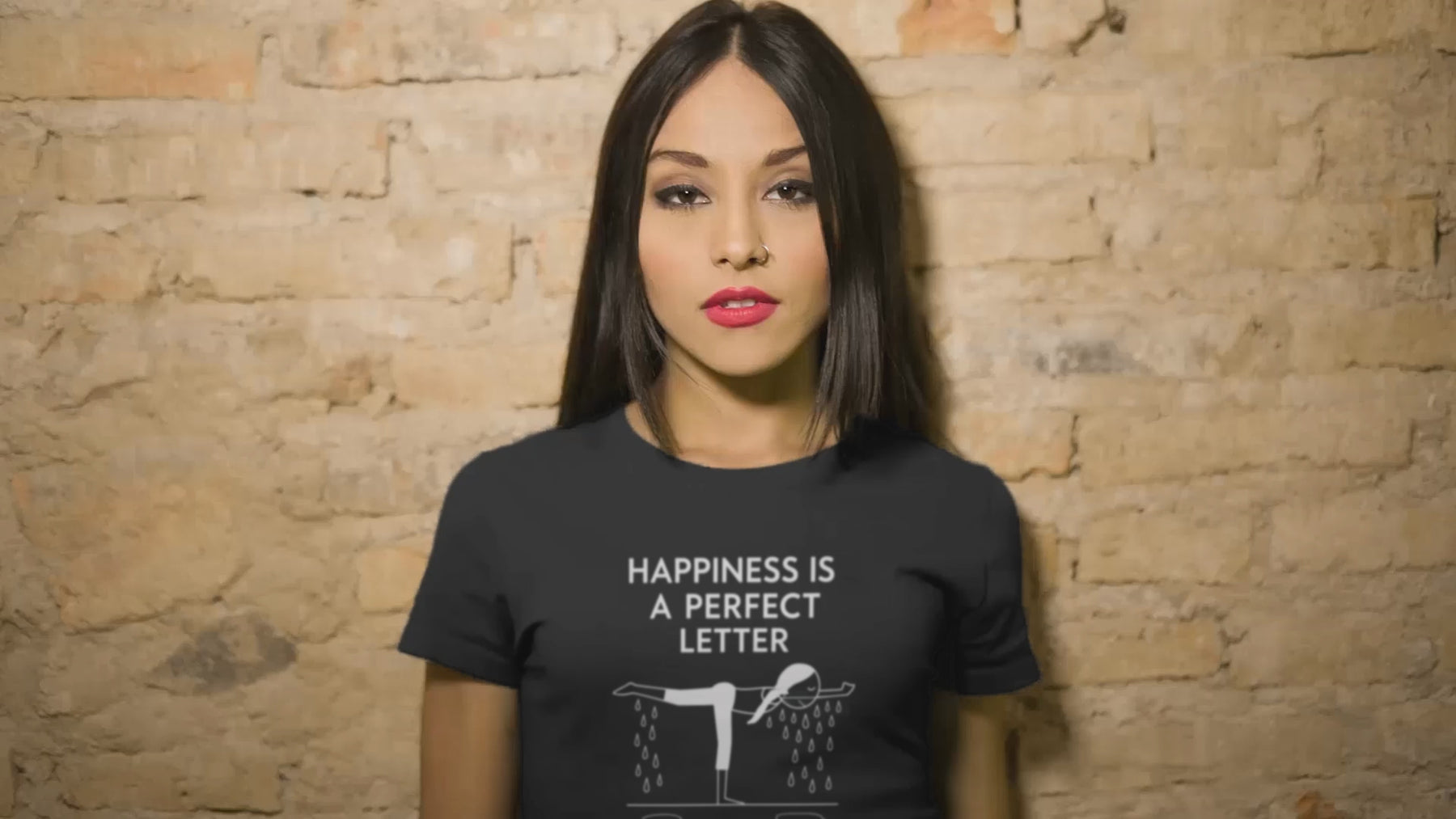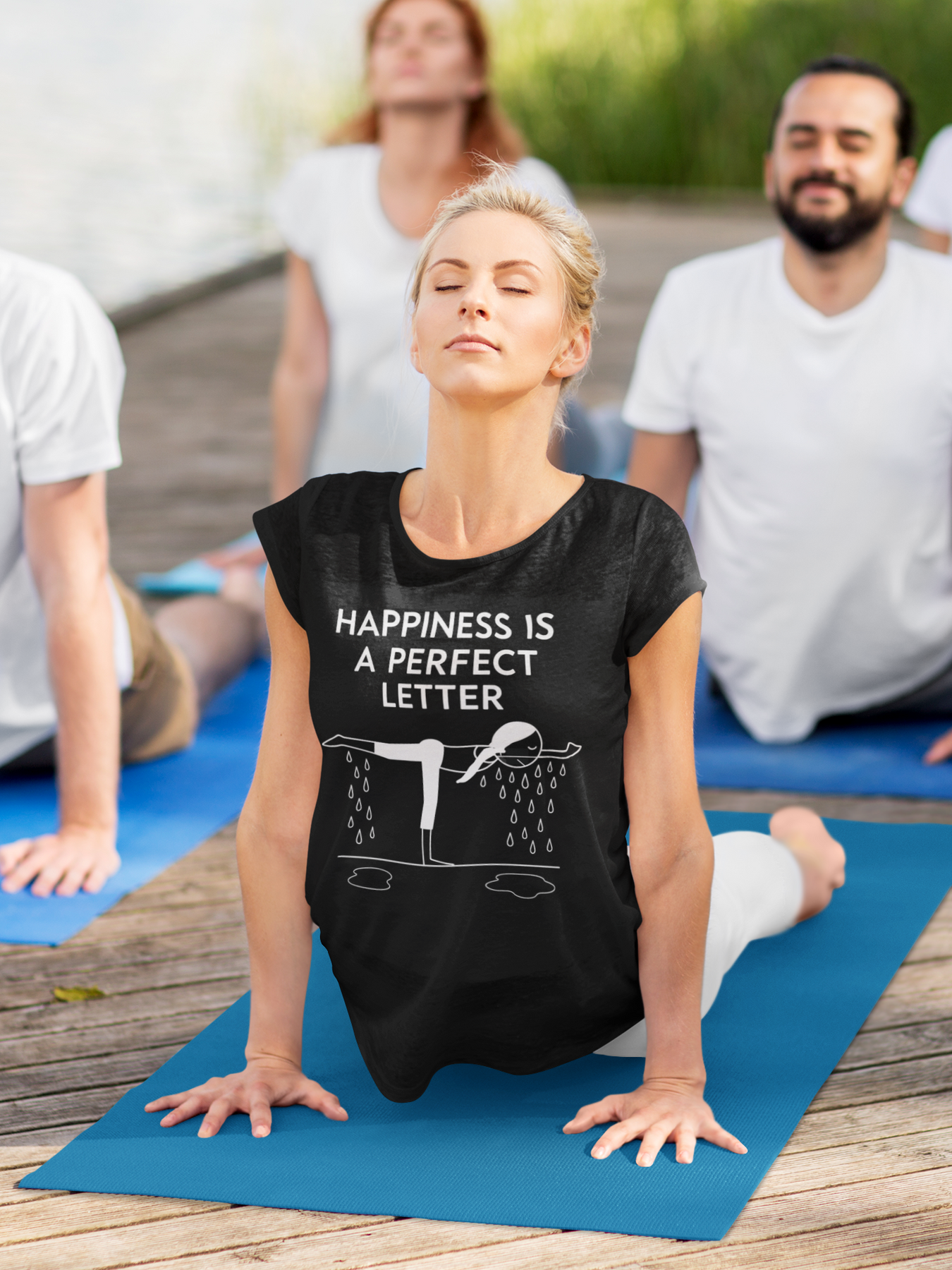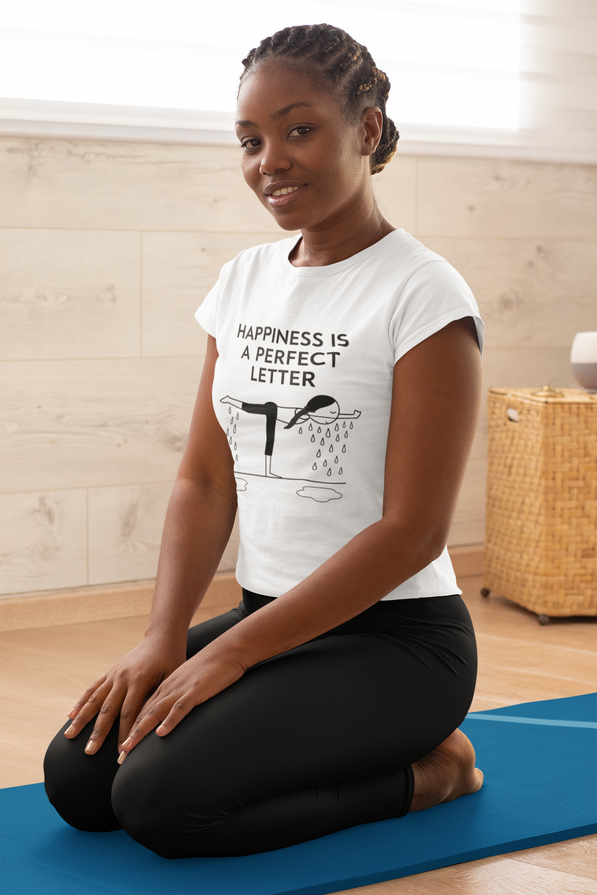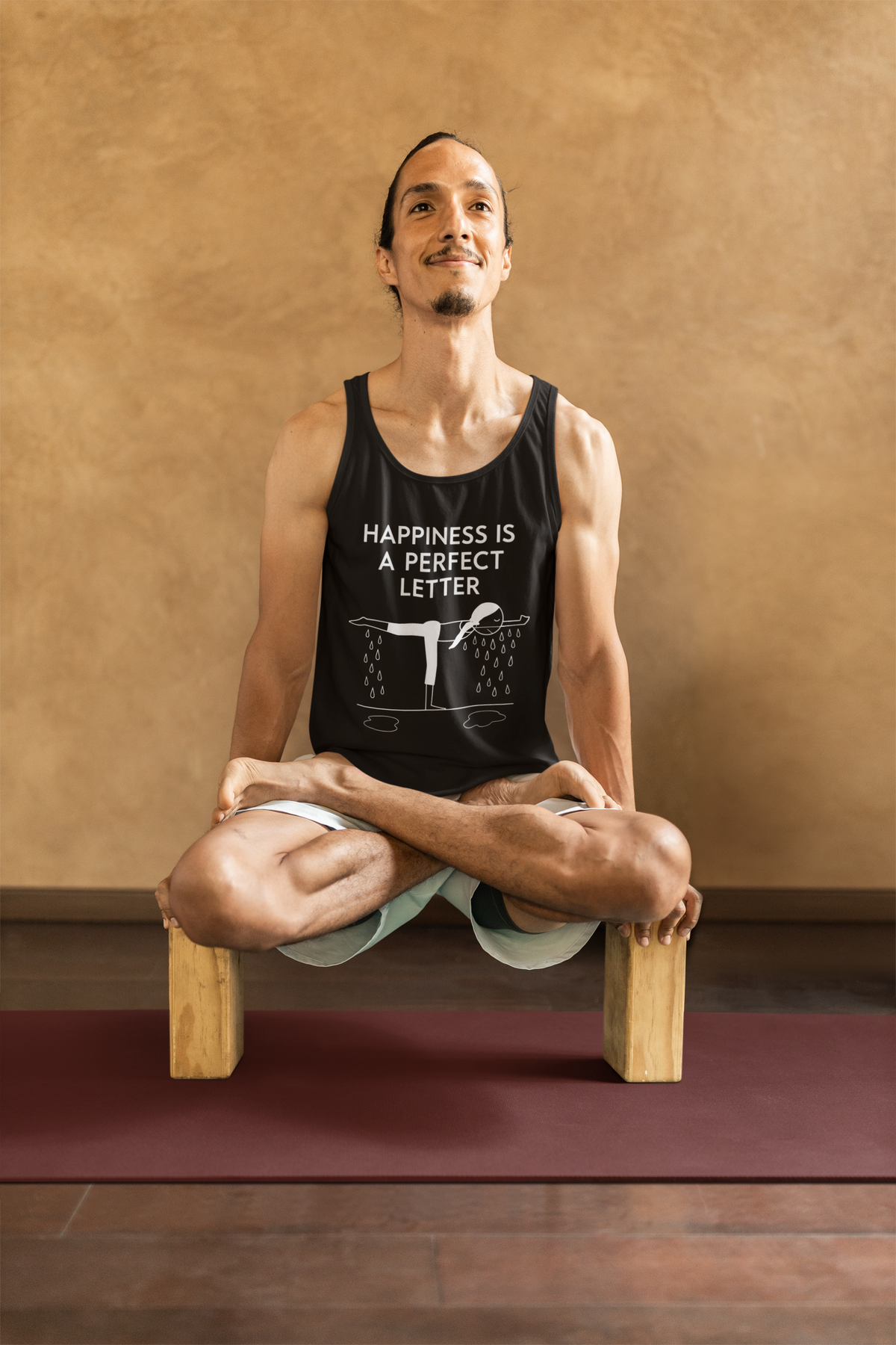 Nail your “T” pose in style with our Happiness Is a Perfect Letter yoga shirt! Inspired by the classic phrase hot yoga instructors love to say during the balancing stick pose, this funny yoga tee features a playful stick-figure yogi in perfect “T” formation, dripping with determination into two clear puddles of sweat. A must-have for hot yoga lovers, balancing pose enthusiasts, or anyone who appreciates a good studio laugh.