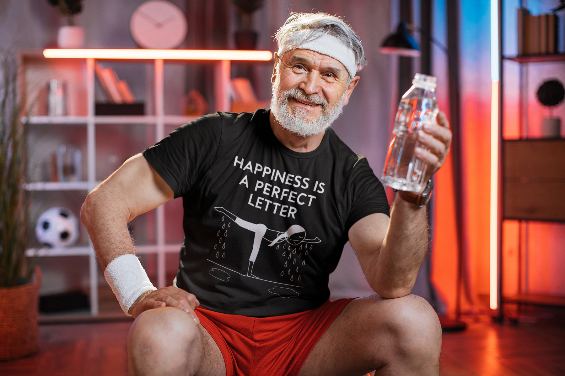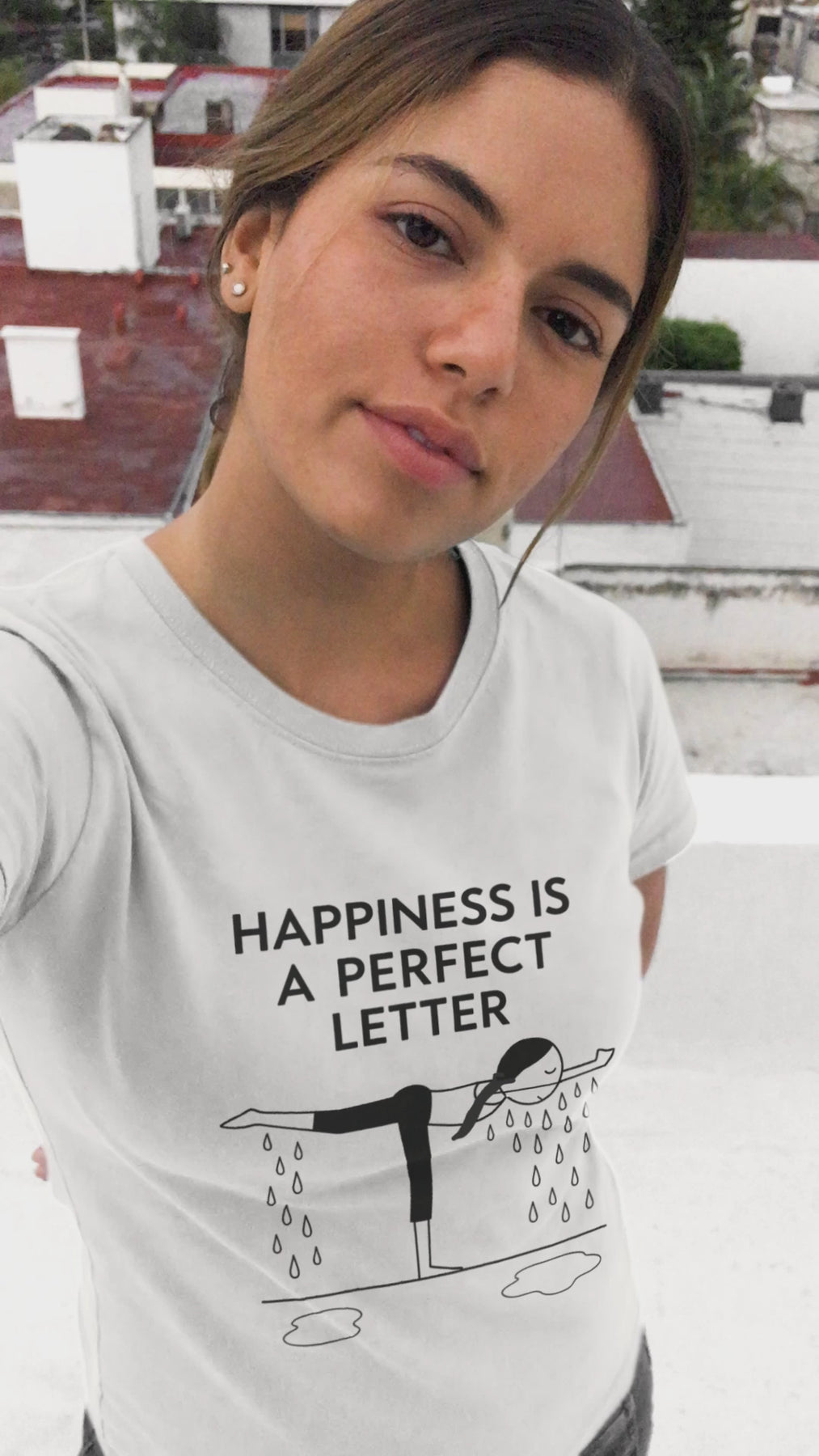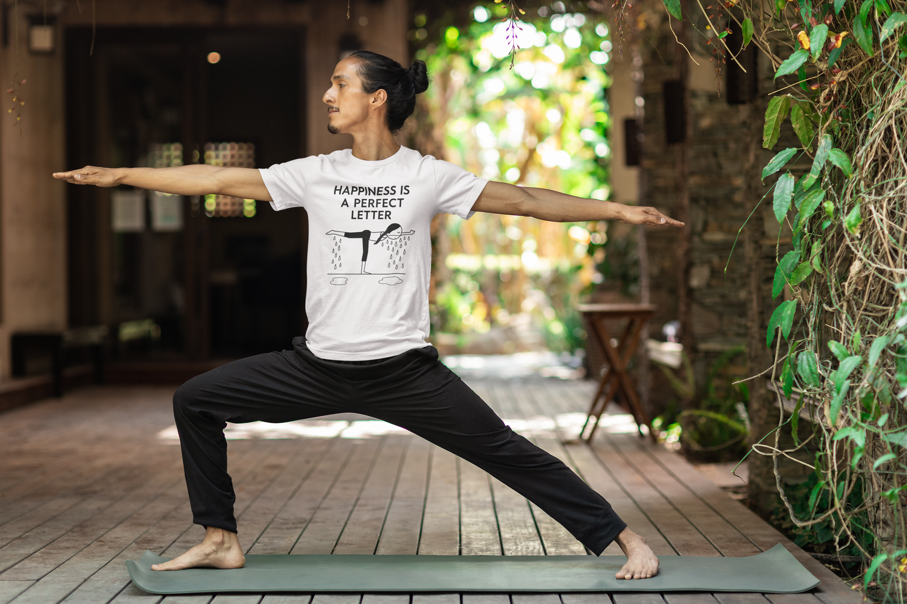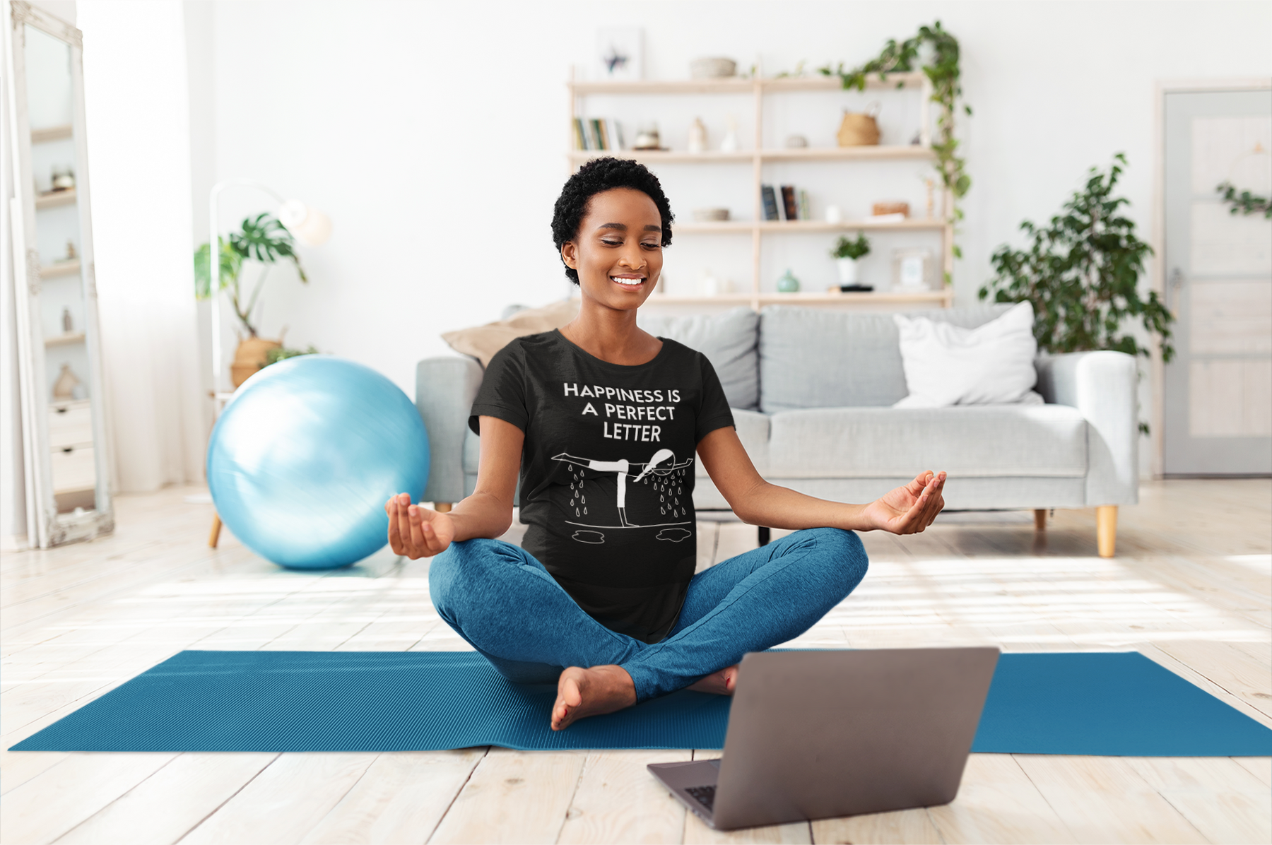 Nail your “T” pose in style with our Happiness Is a Perfect Letter yoga shirt! Inspired by the classic phrase hot yoga instructors love to say during the balancing stick pose, this funny yoga tee features a playful stick-figure yogi in perfect “T” formation, dripping with determination into two clear puddles of sweat. A must-have for hot yoga lovers, balancing pose enthusiasts, or anyone who appreciates a good studio laugh.