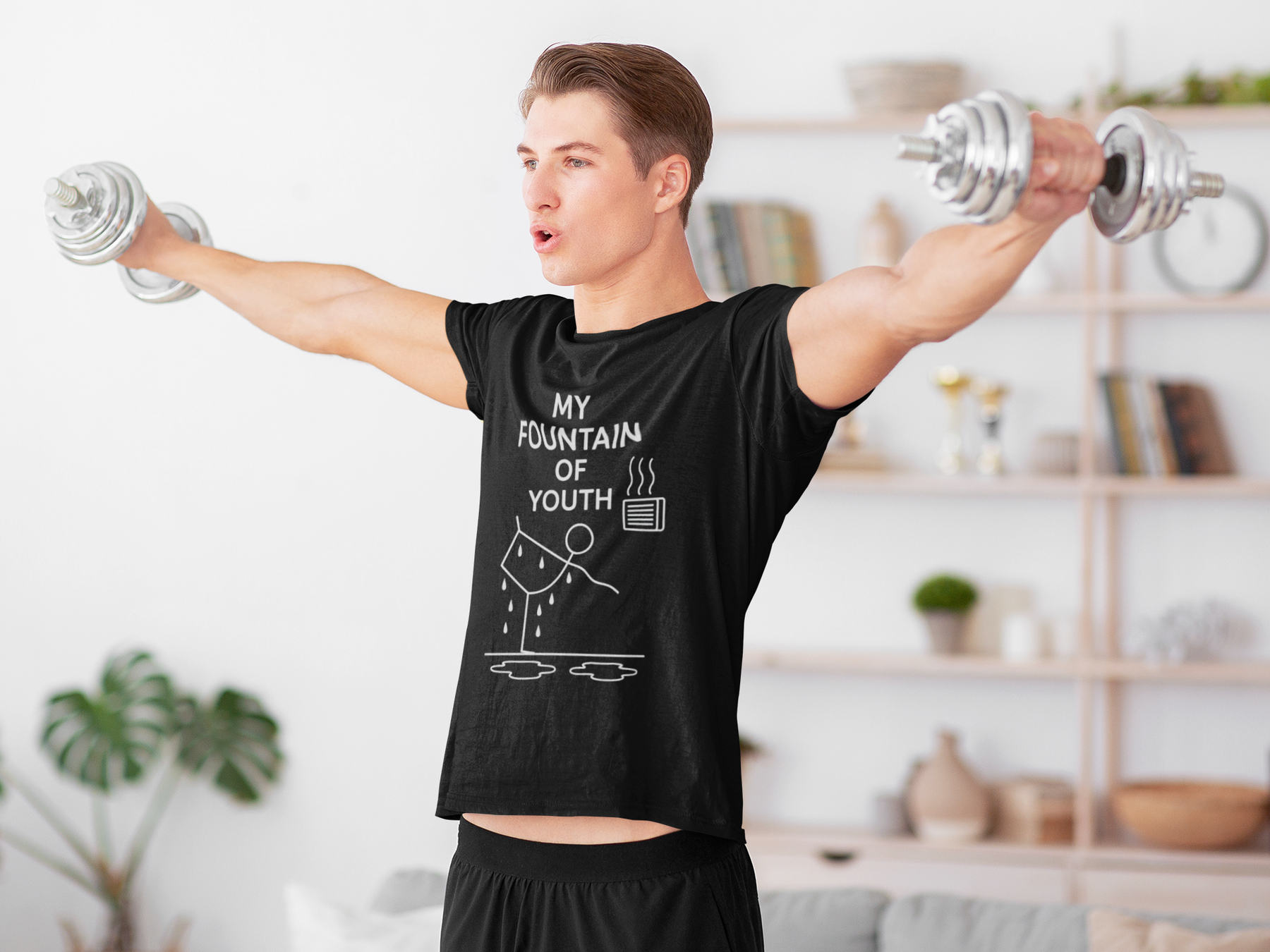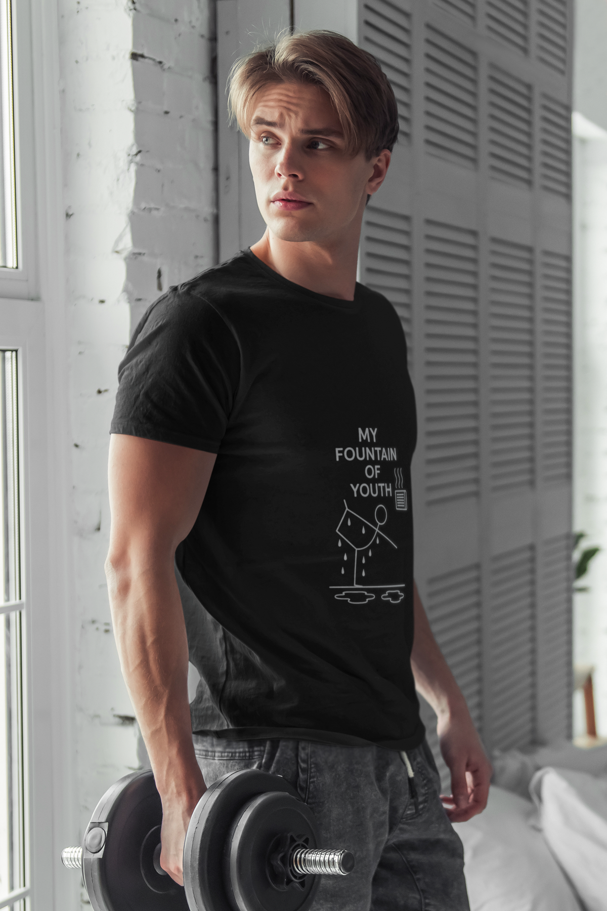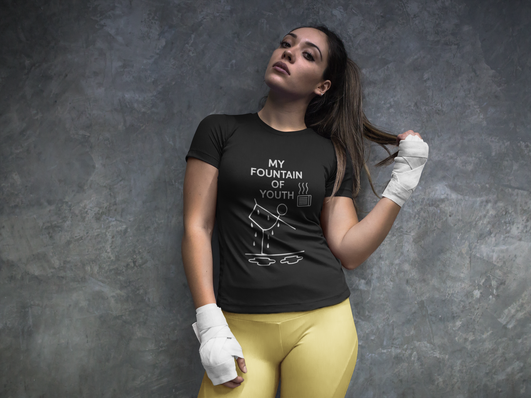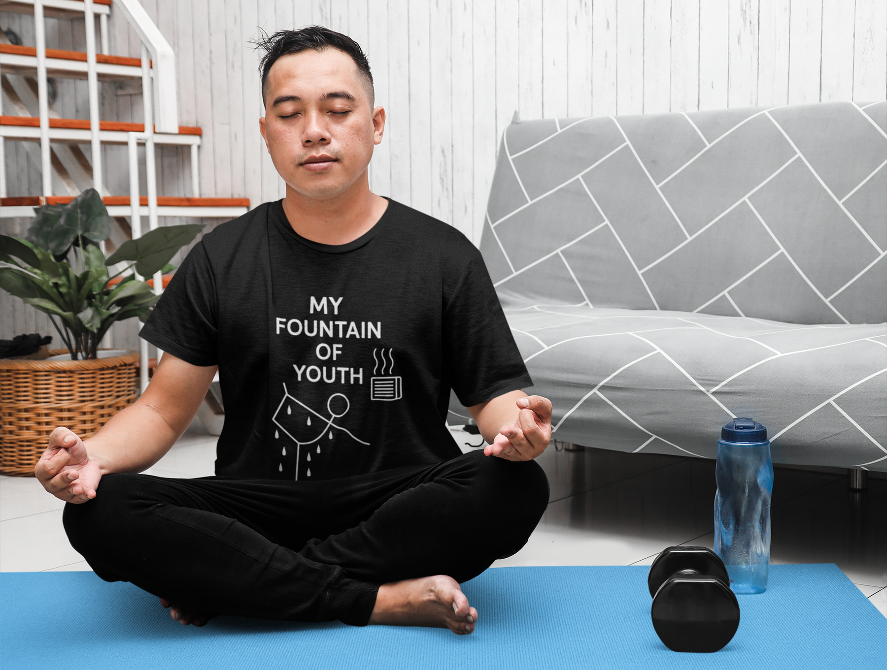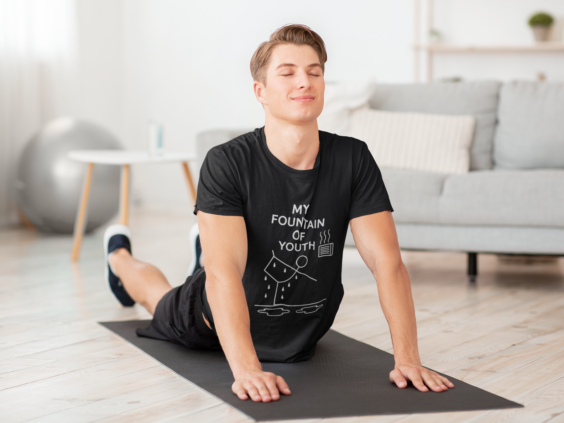 Celebrate the life-changing magic of your yoga practice with this fun, minimalist tee designed for hot yoga warriors and wellness seekers alike. Featuring a playful stick figure striking the standing bow pose in front of a heater (with puddles of sweat to prove it!), this shirt proudly proclaims what every yogi already knows — that yoga is the true fountain of youth.
